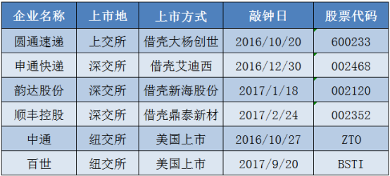回首这两年,中国的物流快递企业在资本市场可谓风头正盛。虽然政策严苛,各家企业还是通过“曲线救国”的方式,陆续完成和资本市场的对接:圆通、顺丰、申通、韵达 “借壳上市”,中通、百世则赴美上市。